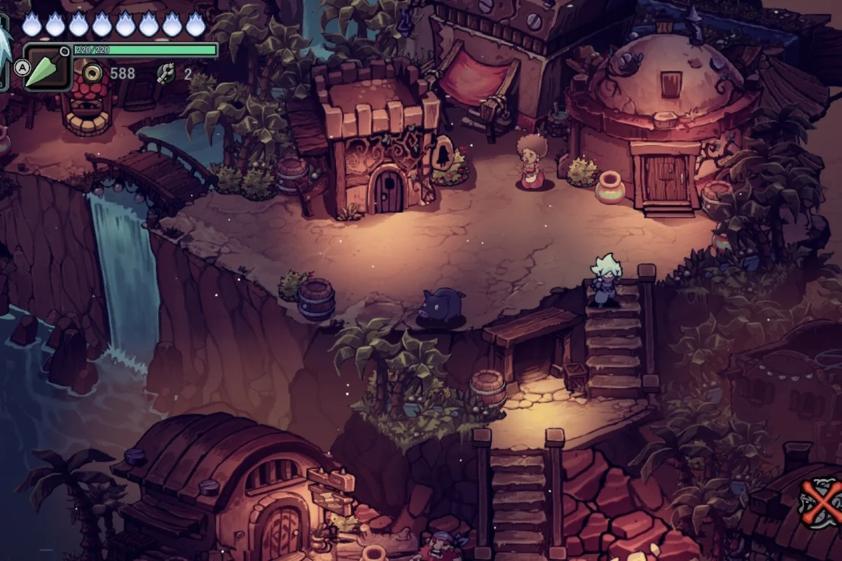 Исследование в Twilight Monk выполнено по канонам метроидвании: ранние зоны скрывают секреты, к которым вы сможете вернуться позже с новыми способностями. Однако вместо цельного мира здесь представлена карта в стиле классических JRPG, по которой вы будете перемещаться между снежными монастырями, джунглями, храмами и древними развалинами. В пути вас ждут не только платформенные испытания, но и случайные битвы с монстрами, переносящие вас на отдельные арены.