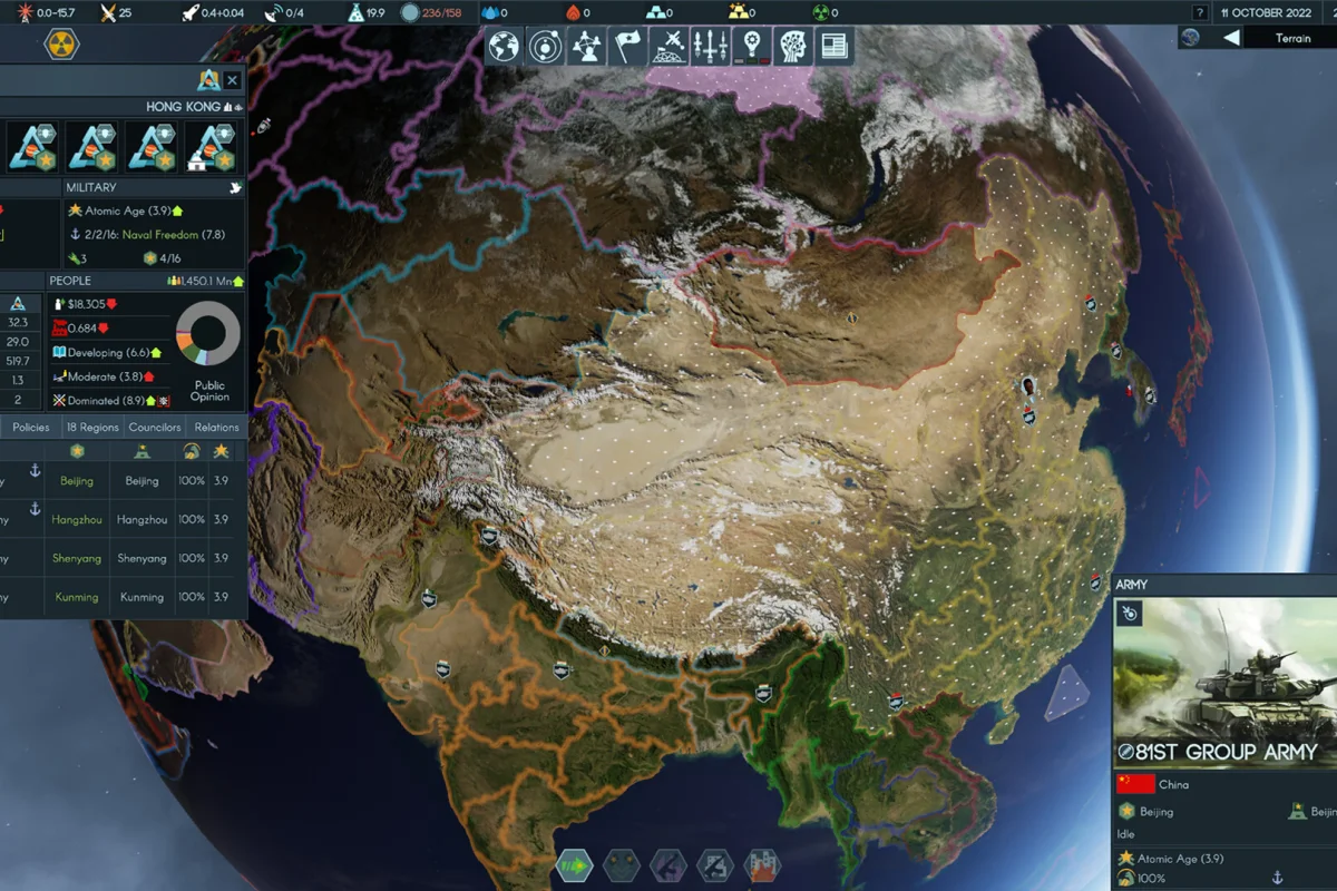 БОРЬБА ЗА ВЛАСТЬ - Вы начинаете игру на Земле в роли предводителя одной из тайных организаций, придерживающейся выбранной вами идеологии. Инопланетяне приближаются, и скоро они будут здесь, но пока что вашими главными врагами (а может быть, и союзниками) станут другие земные фракции. Вместо нации, сформированной территорией, на которой она проживает, вы руководите группой людей, добровольно объединенных общей идеологией. Это важное отличие от большинства стратегических игр: в Terra Invicta перед вами не стоит цель раскрашивать карту в цвета того или иного народа. Вместо этого, вам предстоит действовать в тени, соперничая с другими фракциями за контроль над точками, представляющими военную, экономическую и политическую силу региона. Геополитика - ваша песочница: объединяйте или разделяйте целые нации ради собственной выгоды и используйте подвластные вам народы, чтобы вести прокси-войны с другими фракциями. Каждый регион Земли проработан до мелочей с учетом всех нюансов: от уровня образованности населения и народных волнений до ВВП и социального неравенства. Заполучив контроль над регионами, имеющими финансовое и военное влияние, вы сможете установить свою власть на Земле, но, если не захватить регионы с ракетными полигонами и стартовыми комплексами, войну за Солнечную систему вам не выиграть. Вершите свою волю руками политиков, ученых и агентов, которых вы сможете рассылать по всему миру (и даже отправлять в космос). По мере того, как ваши подручные будут набираться опыта и устанавливать контроль над влиятельными организациями вроде разведывательных агентств и богатых корпораций, их стартовые способности будут развиваться. Закаленный в боях командир сможет более эффективно направлять свой тактический отряд, а опытный дипломат приложит все усилия, чтобы добиться финансирования проекта по противодействию инопланетному вторжению. Ищите единомышленников среди политиков и народных масс и предпринимайте необходимые действия, чтобы склонить приверженцев других идеологий на свою сторону. Общественное мнение имеет множество различных координат: Слуги с их поклонением пришельцам и Протекторат, готовящийся к капитуляции, могут иметь общие точки соприкосновения в плане поддержки инопланетян или противодействия им, в то время как события, которые показывают, что захватчиков можно уничтожить, способны убедить сторонников Протектората в том, что сопротивление оправдано и имеет смысл.