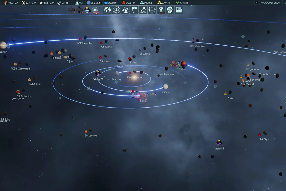 РАСШИРЕНИЕ ВЛИЯНИЕ В ДИНАМИЧЕСКОЙ СОЛНЕЧНОЙ СИСТЕМЕ - Terra Invicta стирает грань между реальным современным миром и фантастическими стратегиями об огромных межзвездных империях. В этой игре вам предстоит направить первые шаги человечества в колонизации Солнечной системы, где в постоянном движении находятся более 300 космических тел - астероидов, спутников и планет, создающих живую и подвижную стратегическую карту. Начните кампанию в наши дни, чтобы строить инфраструктуру с нуля, или в недалеком будущем, чтобы с самого старта уверенно действовать в космосе. Стройте орбитальные станции и планетарные базы, добивайтесь контроля над внутренними планетами и готовьтесь к встрече с экзистенциальной угрозой на дальних окраинах Солнечной системы. Для вас и вашей фракции Земля - не предел. Стройте космические станции, которые будут играть роль верфей и топливных складов, возводите промысловые сооружения для добычи продвинутых ресурсов и создавайте базы, которые потом сможете использовать в качестве научных или строительных центров. Terra Invicta предлагает более детальный взгляд на стратегическую географию Солнечной системы, где космос это не просто набор изолированных звезд, между которыми вы перебрасываете свои войска, а насыщенный и разнообразный ландшафт из астероидов, спутников, карликовых планет, газовых гигантов и других небесных тел, создающих уникальные тактические возможности на каждом ходу. Облик самой карты все время меняется, так как космические объекты, которые образуют ее, находятся в постоянном движении. Это значит, что ваши станции и оперативные базы тоже не стоят на месте, вынуждая вас планировать действия наперед и подстраиваться под переменчивые условия. Так, ваши колонии среди Джовианских спутников могут вдруг оказаться по соседству с военным аванпостом пришельцев или каперской базой Инициативы, которые еще недавно были где-то очень далеко.