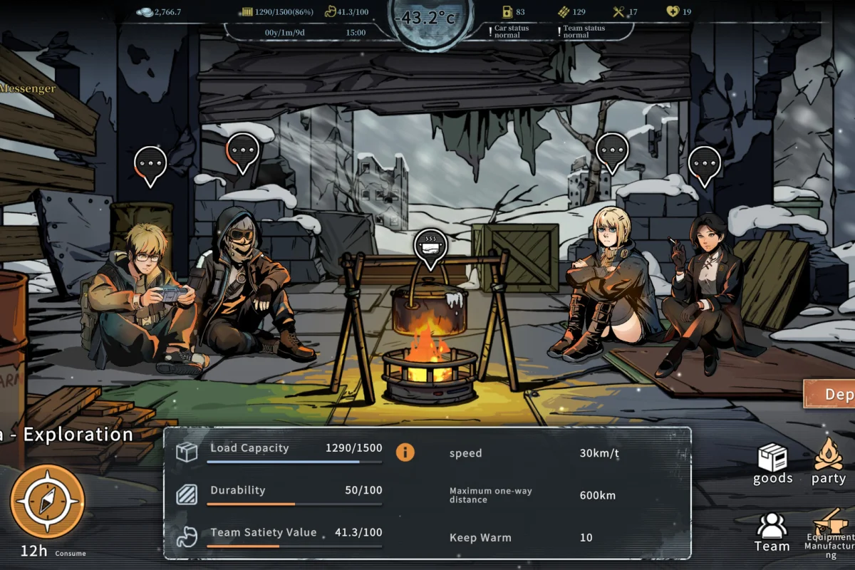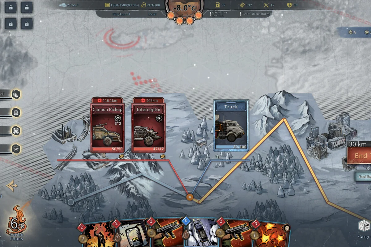 На заснеженных просторах тебя ждёт всё более суровый холод, голод, стресс и повреждения транспорта. Только справившись с этими проблемами, ты сможешь продвинуться дальше. Топливо, еда, предметы первой необходимости, боеприпасы, инструменты… Грузы — это не просто товар для торговли, но и ресурсы для выживания. Грамотно управляй своими запасами.