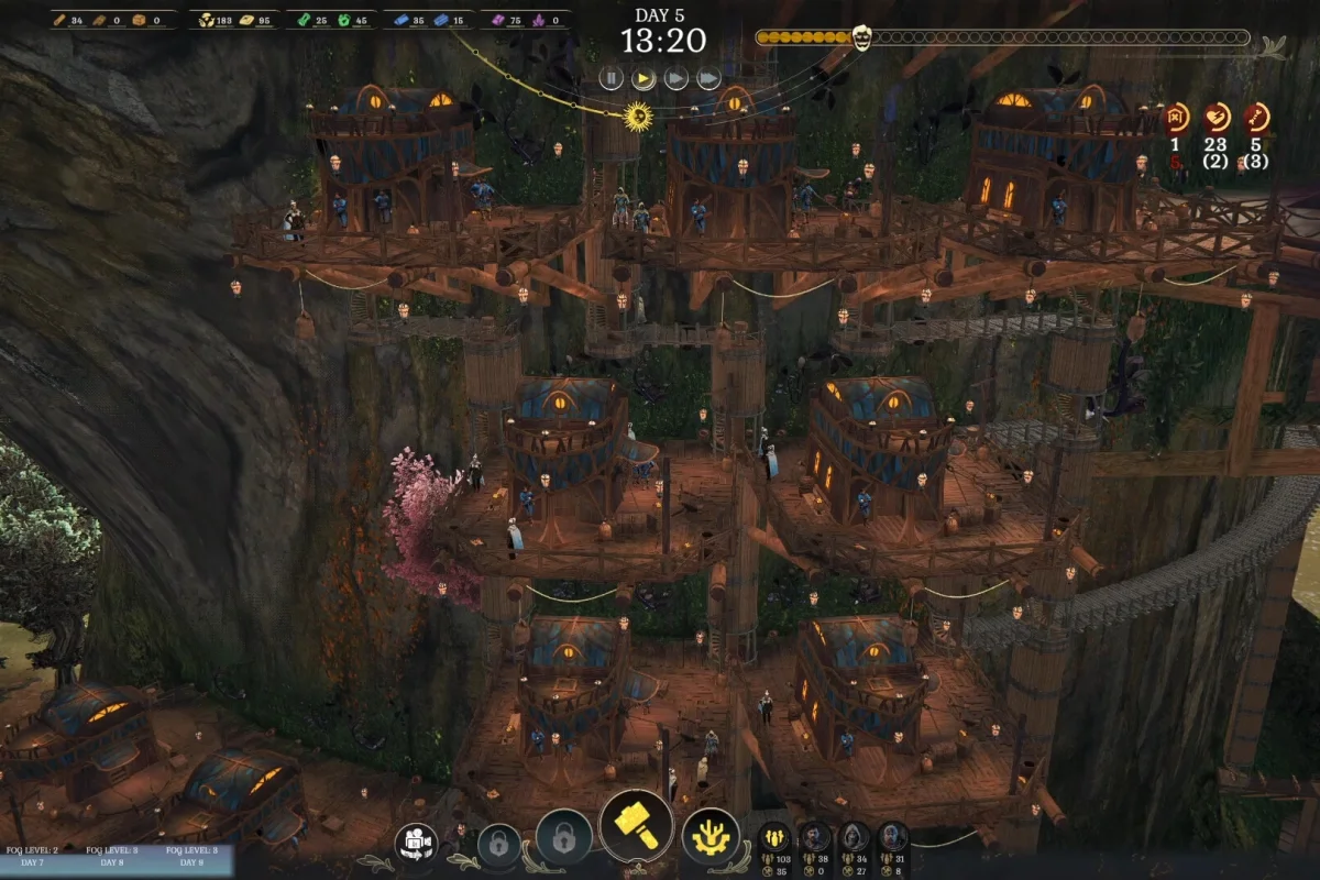 Недостаток пространства на земле вынудит вас проявить смекалку. Сооружайте зиплайны и лестницы, чтобы соединить разные части растущего поселения.