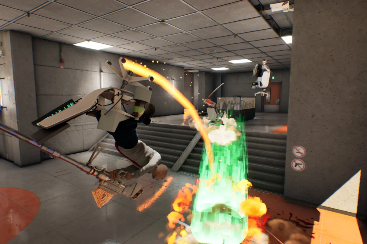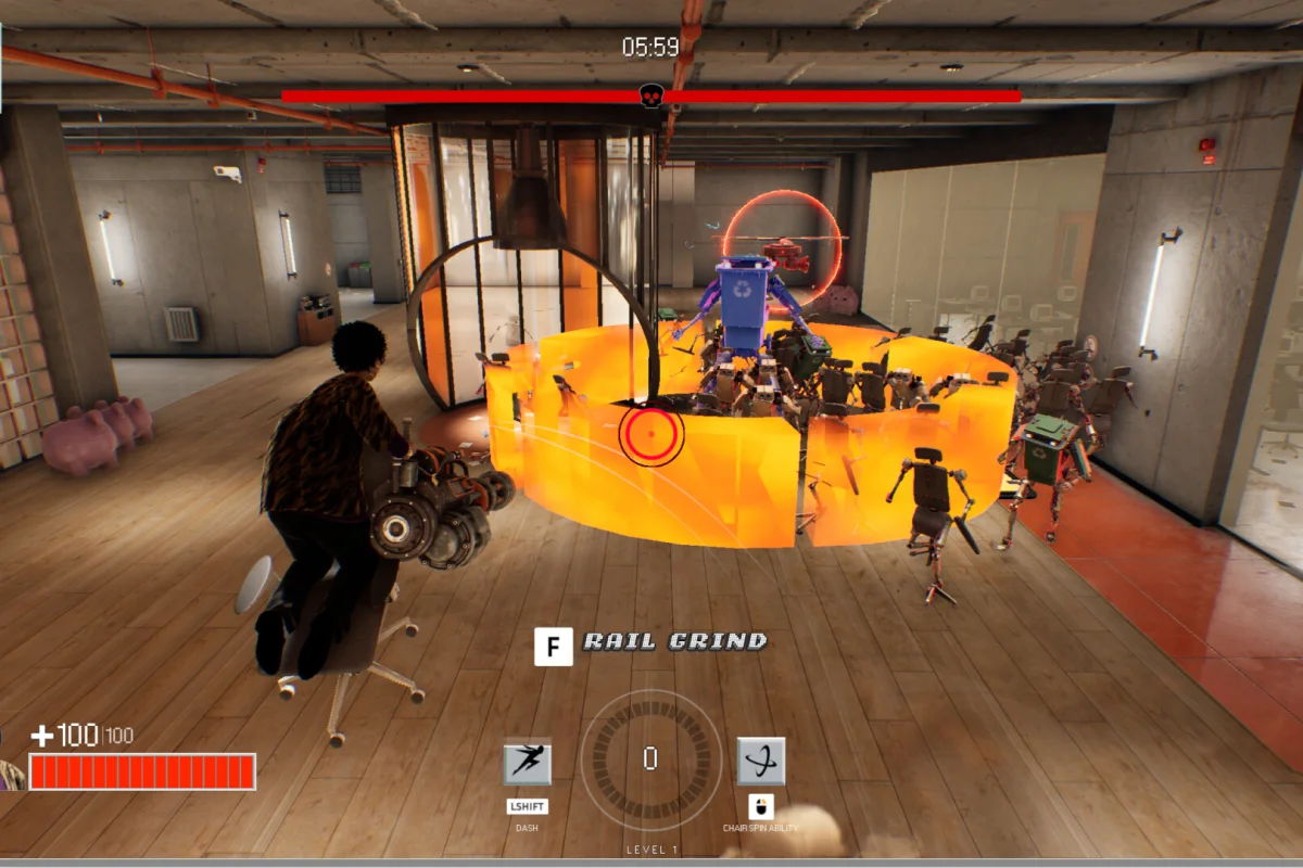 По мере прохождения можно улучшать своё кресло, собирать полезное снаряжение, усиливать персонажа и подбирать новые апгрейды, которые помогут продержаться как можно дольше. Чем дальше, тем хаотичнее и веселее становится происходящее.