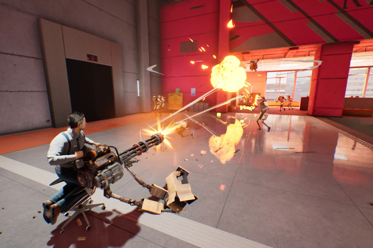 В одиночку или вместе с друзьями вам предстоит прорываться через офисные пространства, отбиваясь от всё более агрессивных волн врагов. Причём противостоять придётся не кому-нибудь, а обезумевшей офисной технике — принтерам, ксероксам, кофемашинам и прочим «монстрам» рабочего быта.