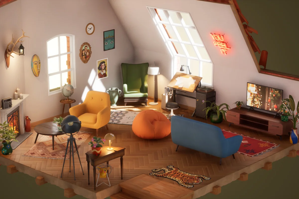 Отдельно стоит отметить атмосферу. Визуально Hozy сочетает мягкий стиль с элементами реализма, а звуковое оформление создаёт ощущение уюта и спокойствия. Лёгкий шум ветра, тишина комнаты, щелчок выключателя и ненавязчивая музыка делают процесс особенно расслабляющим. Иногда камера ведёт себя неидеально, но это скорее воспринимается как небольшая шероховатость живой и развивающейся игры.